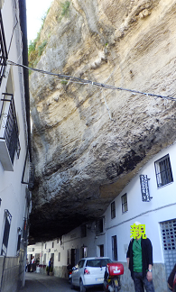 悪夢の車上荒らしから一夜明け…。さーて、今日からまた新しい気持ちで頑張るぞ!今日は、まずは午前中にセテニル(Setenil de las Bodegas)っていう村に行くんだって。「おもしろい地形のところに人が住んでるから見に行こう」ってことです。車に乗り込みしゅっぱ~つ。ロンダから車で15分で行ける白い村…。なのに、少し道に迷って45分くらいかかっちゃった。