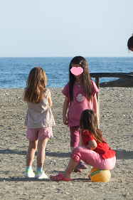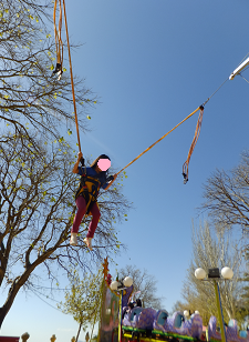 公園の仮設遊具。母におねだり1回2€。見て見て、アタシ、飛んでる!!すごくこれ、気に入っちゃったみたい、アタシ。2回目をおねだり、でも却下…。