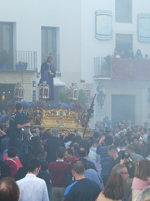 さて、遠めからのんびり眺めていると、いよいよキリストを載せたお神輿が登場です。