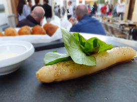 白アスパラガス(4€)。高いなぁ~。しかも、アタシにはまだ早いでしょ、こういう素材の味を生かした繊細な味のタパス…。でも、親は大満足の模様。実は、このお店も例のスペイン人の友人のおすすめなのでした。少し高いですが、味は確かです(親談)。