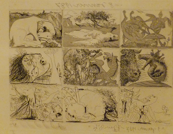 ピンチョス盛り合わせ7種(10€)。これはうまい!!土台となるパンも香ばしくておいしいし、具の種類が違うので、飽きないで食べられます。日本人だったら、大人2人でも十分な量です。たまたま入ったバルですが、この「La Escueva」はおススメです。って、親が言ってます。