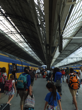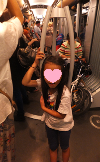 狭ーい車内。なんでみんな体が大きいのに、電車は小さく作るんだろう…。不思議。