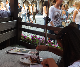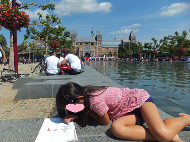 ベルギーワッフルっていうんだって。うんうん、うまいうまい。チョコレートが甘すぎなくていいぞー。親いわく、ここベルギーはワッフル発祥の地。2泊しかないけど、できるだけ食べようね~、だって。おー、旅が面白くなってきたぞ~!。