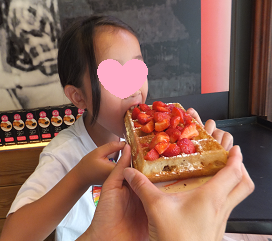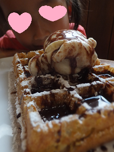 今度は、少し列ができているワッフル屋を発見。ワッフルのハシゴだーい。
