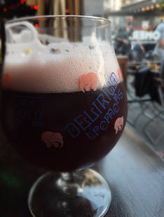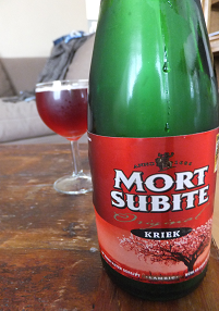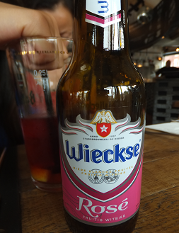 「St Louis(サン・ルイ)」のチェーリー味。(父「酸味がさわやかなビール。ただ、僕には少し甘すぎるかな…」)