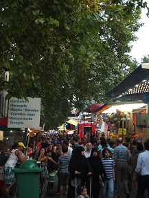 さっきのお店で食べたのはリエージュ風(liege)っていって、丸くてしっとりモチモチの食感。今回はブリュッセル風にしてみました。これは、サクサクカリカリの食感。これに、生クリームとかチョコとかフルーツをトッピングします。さっきチョコをなめすぎたので、今度はイチゴだけでさっぱりといただきます(4.50€)。…しかし、失敗。カリカリなので、やっぱりチョコとか生クリームとかで少し柔らかくなったとこをいただくのがベターだと思います…。ワッフル自体はそんなに甘くないので、これじゃ、煎餅の上にイチゴのっけて食べてんのと同じだわ…。