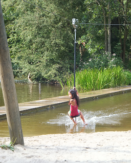 子供にワッフルをあてがっている隙に、親はこれ。これもビールなんだって。日本じゃ、見たことないな~、こんな色のビール。親、さわやかに喉の渇きを潤しています。