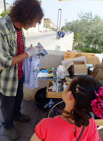 ローマ橋付近、一人のアーティスト発見~!筆を使わないで、ぜーんぶ指で絵を描くんだよ~。アタシも絵が好きだから、その技術に見とれちゃった。