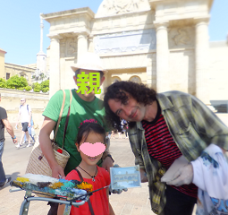 アタシをイメージして絵を描いてもらっている最中。ものの5分程度で出来上がります。親が相当気に入ったらしく、購入を決意。でも、アタシ…「描いてもらった絵じゃない絵」を親に提案。親に「せっかく描いてもらったのに…。どうして描いてもらったのにしないの?」って怒られながらも…。アタシ、これのほうが気に入ったんだもん!