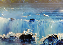 見て、この滝の水しぶき。この迫力は「指絵」ならでは、かも…。