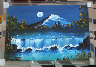 月夜に浮かび上がる山と滝…。これで5€は、安いぞ!!