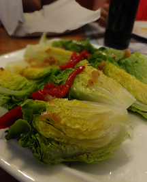 シンプルな茹でレタス(lechuquita)、そして、(親は)冷えたモンティーリャ(montilla)で乾杯です。モンティーリャは、ここコルドバの白ワイン。飲み方はそれぞれですが、うちの親は、食前酒的な感じと感想を述べています。つまり、「甘くて濃い」って感じらしい…。
