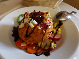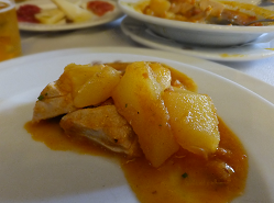 コルドバの名物料理でトマトの冷製スープなんだけど、スペイン人の友達は「ここのサルモレホは絶対に食べとけっ!」と…。確かにスープっていう感じじゃなくって、独特。さらさらと飲むんじゃなくて、完熟トマトの濃厚なディップっていう感じ。でも、ニンニクがきいてて、子供にはちょっとなぁ…。親いわく、こんな濃厚なサルモレホは食べたことがない、と…。さらには、濃厚なトマトの味わいとニンニクの引き締め感。それにビネガーのさわやかさが絶妙なハーモニーを奏でている、と…。これをパンに付けてもいいんだけど、もっとおいしいのは、パデビ(padevi)っていうウエルバ地方のおせんべいでいただくのが最高、らしい…。