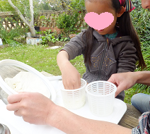 手でゆっくりかき回していくと、なんとなく固まってきます。