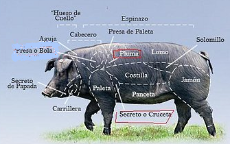 部位を知りたい人は、下のイベリコ豚さんの絵を見てね。おー、まさに希少部位だなぁ~。でも、そこまで高くないのがうれしい。