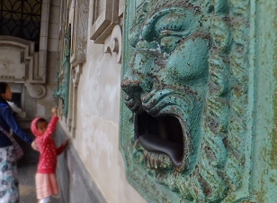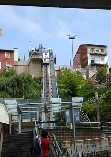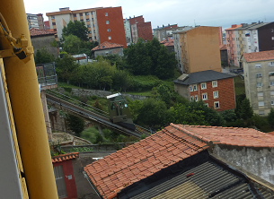 これは、フニクラル(funicular)というエレベーターというかケーブルカーというか…。丘の高台に住んでいる人は、これで、街中から上がってくることができます。短い距離なので、もちろん無料。さっそくフニクラルに乗って、町のほうにおりてみよう。