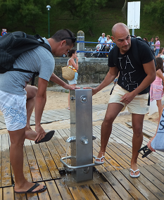 こっちの浜では、だいたいこんな公共の足洗い場があります。すばらしい。