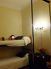 この時期(7月)のサンセバスティアン(以下、サンセバ)はすでにハイシーズン。ホテルは異常なほど高い…と親が嘆いてます。でも、そんなことアタシには関係ないもん。2段ベッドがあって、この部屋、気に入ったぞ。