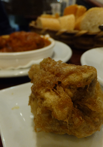 アーティチョークのフライ(1.80€)。奥が肉団子(albondigas)(3.50€)。