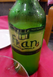 アパート付近の庶民的なレストランへ。父、まわりのお客さんのみんながシードル(sidra)飲んでいるので、それを注文。リンゴのお酒なんだって。北の地方は、いろんな場所でシードルが飲まれてるけど、ここアストゥリアスでも庶民的なお酒。