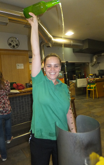 「目をつぶってでもできるわよ!」と元気なお姉さん。味は日本人の想像する甘いシードルと違うから、気を付けてね。リンゴの発酵臭が相当きついらしい…。何でも飲む母親でも、「これはちょっと…」らしい。
